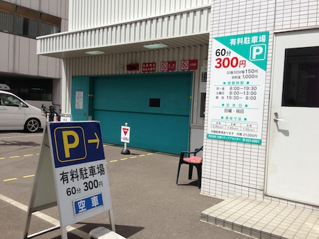 最寄りの有料駐車場をご利用下さい。日産横には日産が経営する有料駐車場、裏通りには札幌メディケアセンタービルの有料駐車場(写真)もあります。